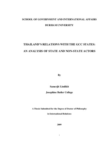 THAILAND’S RELATIONS WITH THE GCC STATES: AN ANALYSIS OF STATE AND NON-STATE ACTORS