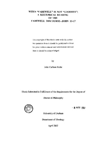 When 'farewell' is not 'goodbye' : a rhetorical reading of the farewell discourse : John 13-17.