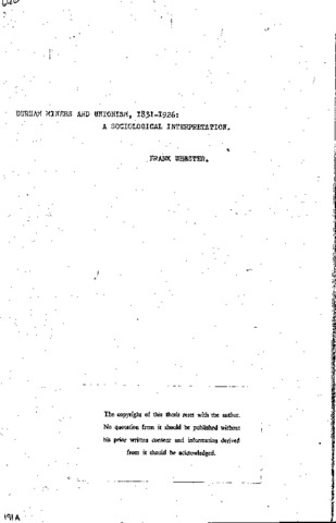 Durham miners and unionism, 1831 - 1926: a sociological interpretation