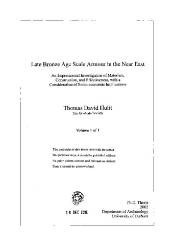 Late Bronze Age scale armour in the Near East : an experimental investigation of materials, construction, and effectiveness, with a consideration of socio-economic implications