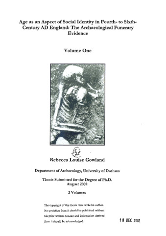 Age as an aspect of social identity in fourth-to-sixth- century AD England : the archaeological funerary evidence.