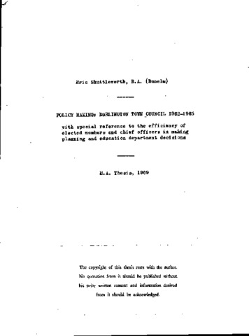 Policy making: Darlington town council 1962-1965 with a special reference to the efficiency of elected members and chief officers in making planning and education department decisions.