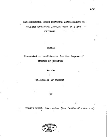 Radiochemical cross sections measurements on nuclear reactions induced with 14.5 MeV neutrons.