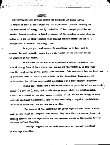 This thesis describes the use of proportional counters in conjunction with the Durham High Energy Cosmic Ray Spectrograph to measure the most probable ionization energy loss of relatioistic μ-mesons in a neon methane mixture. The experiment was initiated by D.G. Jones who constructed most of the equipment and obtained the initial results. The authors task was to examine the theoretical work in this field and relate it to the experiment and also to continue with the experimental work with a view to determining the optimum conditions for such an experiment. In the course of this investigation additional results were obtained, which together with those of Jones give an accurate measurement of the variation- of ionization energy loss with the total energy of the u meson in the range from below 1 Gev to above 10 Gev. This work was carried out at the Physics Department of the Durham Colleges in the University of Durham under the supervision of Dr. A.W. Wolfendale during the year 1959-60.