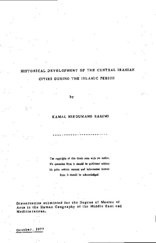 Hiostorical development of the central Iranian cities during the Islamic period
