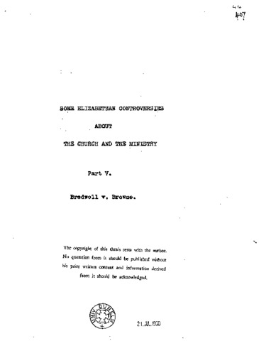 Some Elizabethan controversies about the church and the ministry