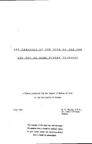 The theology of the book of Job and its use by some modern thinkers