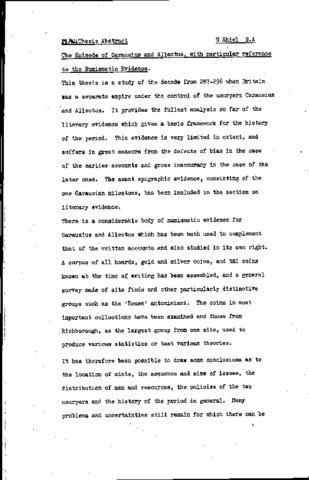 The episode of Carausius and Allectus, with particular reference to the numismatic evidence