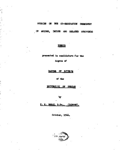 Studies on the co-ordination chemistry of Amides, Imides and related compounds.