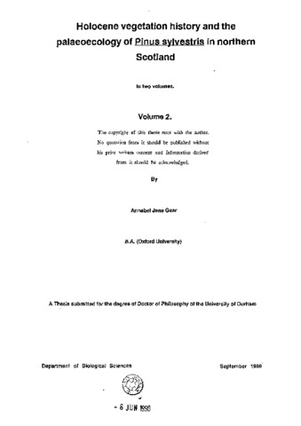 Holocene vegetation history and the palaeoecology of Pinns Sylvestris in North Scotland.