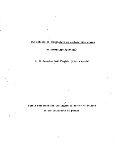 The effects of temperature on certain life stages of Simuliidae (Diptera).