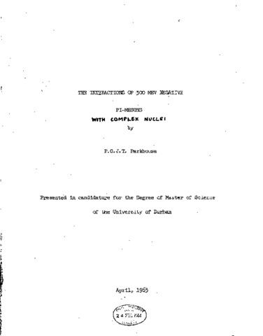 A stack of emulsion pellicles has ben exposed to a 300 MeV beam of π(^-)-mesons and their interactions with nuclei have been observed by following 140 m of track. In order to analyse the events the usual techniques have been employed in addition to which a new method due to the author of measuring the ionization of tracks, steeply inclined to the emulsion plane, is presented. The interation lengths for the production of inelastic interactions and elastic scatterings are (37.9 ± 2.0)cm and (77.4 ± 5.8)cm respectively. An optical model analysis leads to an absorption coefficient and change in wave number of (1.5 ± 0.15) 10(^12) cm(^-1) and (1.32 ± 0.12) 10(^12) cm(^-1) respectively. The differences from the expected values are consistent with a reduction of the cross-section for elastic scattering within the nucleus of about 3 times. The average energy for inelastically scattered pions varies with the angle of scattering and resembles that for the scatting of pions by free, stationary nucleons except that the energy in the forward direction is somewhat reduced. The angular distribution for the scattered pions is somewhat reduced. The angular distribution for the scattered pions shows near isotropy whereas the equivalent graph for scatting on free nucleons is strongly peaked in for the forward direction. A mode of interaction in which only a single collision of the pion with a nucleon occurs is, proposed. The pion emerges without further collision and the struck nucleon goes on to make other collisions. The exclusion principle has been applied to an experimentally determined distribution of momentum in the nucleus and a strongly inhibitive effect results, producing an isotropic distribution of the secondary, pions and a lowering of the average energy of these pions in the forward direction. For absorption of the pion it is proposed that two absorbing nucleons are involved which go on to make other collisions. Energy balances have been performed on the inelastic scatterings and absorptive events. They show good agreement with the available energy.