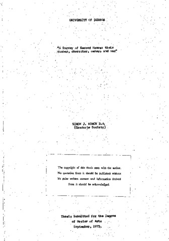 Second home ownership is increasing in importance in this country as underlying motivating forces are coupled to expanding opportunities for ownership, principally in ters of the availability of time, money and suitable property (Chapter 1). The study of this phenomenon is hampered by problems of definition and by difficulties of gathering information (Chapter 2), although much work has been undertaken abroad, particularly in France, Scandinavia and North America (Chapter 3.i). In Britain, knowledge is relatively limited in scope and is fragmentary in coverage (Chapter 3.ii), and the writer’s investigation into second homes in Weardale was made as a contribution from a region not previously studied but one where second homes have spread rapidly in recent years (Chapter 3.iii). Second homes in general are characterised by a wide variety of type (Chapter 4.1), and are often purchased or rented through private, rather than through commercial, channels (Chapter 4.ii). Their popularity may tend to increase property prices (Chapter 4.iii), while the common use of much old property often necessitates its extensive improvement and renovation (Chapter 4.iv). The owners of second homes are correspondingly diverse, although they tend to be above average in income and in education (Chapter 5.i). Their average use of the second home varies considerably as does the range of their activities while at the second home (Chapter 5.11), but less diversity is discernible In the location of the first home which is often within two hours driving time of the second home (Chapter 5.111).Increasing numbers of second homes in Britain cause effects at both national and local levels. Nationally, these involve the use of resources that could possibly be used for other purposes while, locally, there are complex economic, social and environmental implications which are, however, little understood at present (Chapter 6). As growth continues, controls seem to be necessary so that the Impact of second home construction on the landscape is minimised, and so that social and economic effects In second home localities are more beneficial than detrimental for the local Inhabitants (Chapter 7).