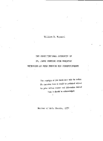 The constitutional authority of Dr. Jabez bunting over Wesleyan Methodism as seen through his correspondence