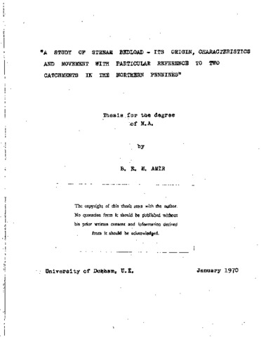A study of stream bedload – its origin, characteristics and movement with particular reference to two catchments in the Northern Pennines