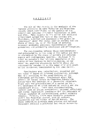 The aim of this thesis is the analysis of the various pressures in late Victorian and Edwardian society which contributed to the genesis of the pension and national insurance legislation of 1908 and 1911. Many aspects of the social and political environment around the turn of the century are, therefore, outlined and discussed - the growth of ‘awareness' about the social gulf in society and the state of those in, or on the brink of poverty; economic problems; political circumstances and pressures; and prevailing ideologies and philosophies. The relationship between these considerations and policy-making is the crux of the matter and this is elaborated by the study of private and official papers and contemporary speeches. Although it is vital to ascertain the relative importance of the multitudinous factors to decision-making, we can never say anything absolutely definite about the relationship because it is the human mind with which we are concerned, complicated by the time factor. Conclusions are, nevertheless, essential and are valid if based on informed speculation, although may vary according to the predilections of the individual politicians. Conclusions about the genesis of social reform in Edwardian Liberalism necessitate the erection of a three-tier structure. There were the preconditions of a social policy - the existence of an urban industrial society and its concomitant evils. There were opinion-creating factors such as social revelations, national efficiency and social imperialist ideologies and the existence of foreign examples of state-sponsored social security schemes. Finally, there were catalytic pressures within the Edwardian period, such as economic depression and the threat of Tariff Reform. The whole cumulative pressure made pension and national insurance policies a political and social necessity.
