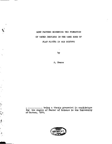 Some factors governing the formation of water droplets in the wake zone of flat plates in air streams.
