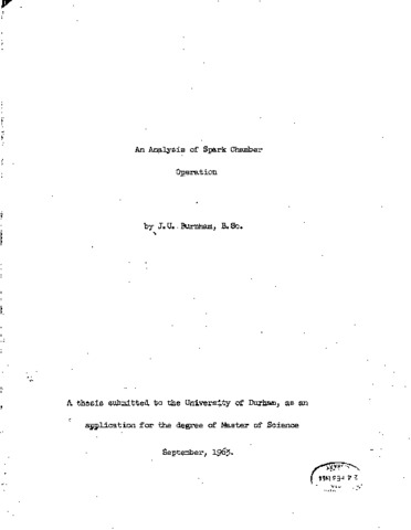 The characteristics of a spark chamber containing a neon alcohol mixture are described with particular reference to the variation of efficiency with the parameters of the pulse and the determination of the spark formation time. .An interpretation is made on the basis of a model for spark formation and the validity of the mechanism is examined by an internal comparison of the data. The results are used to derive the electron drift velocity as a function of field over the range of E/p from 0.05 to 4 v cm(^-1)(mm Hg)(^-1) and to determine the probability of a single electron initiating a spark. This is found to be 0.25. Measurements are also reported on the effect of electron attachment and on the geometrical properties of the sparks. Conditions are studied both for minimising the angle between the direction of the particle trajectory and the ensuing spark, and for reducing the error in location of the trajectory (0.2 mm).Conclusions on the design of spark chambers are presented and a historical review of the development of the spark chamber as well as a survey of the different types of spark chambers developed Up to the present time are given.