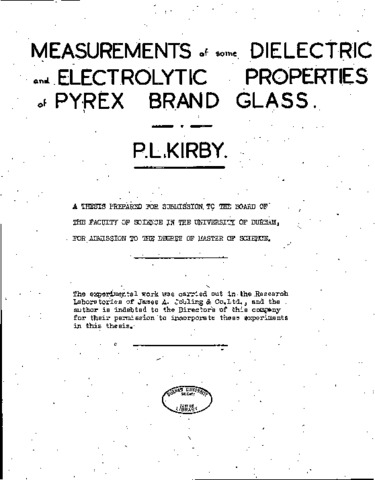 Measurements of some dielectric and electrolytic properties of pyrex brand glass.