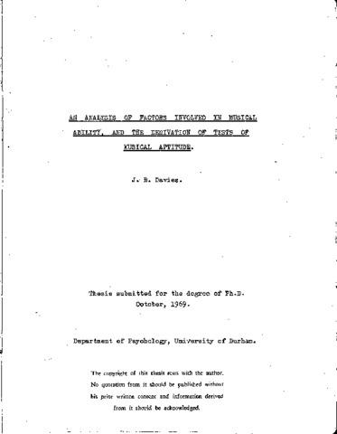 An analysis of factors involved in musical ability, and the derivation of tests of musical aptitude