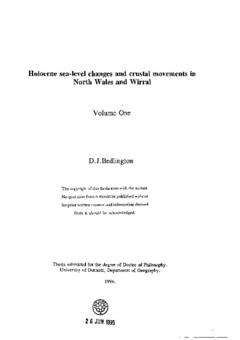 Holocene sea-level changes anad crustal movements in North Wales and Wirral.