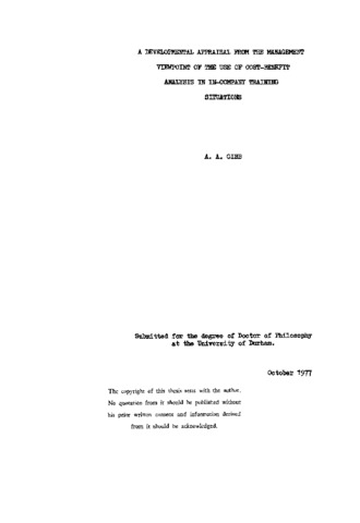 A development appraisal from the management viewpoint of the use of cost-benefit analysis in in-company training situations