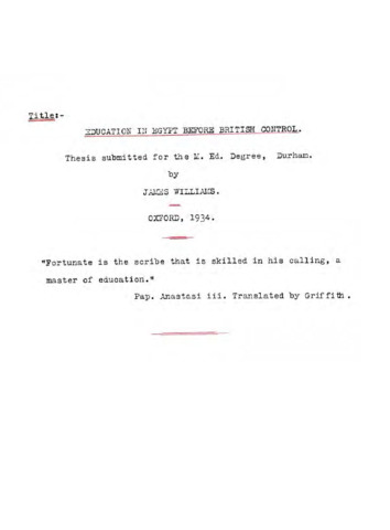 Education in Egypt before British control.
