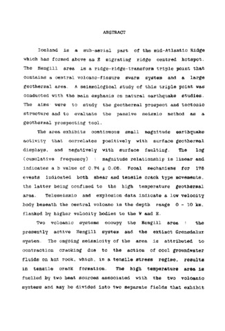 Seismological studies at the hengill geothermal area SW Iceland