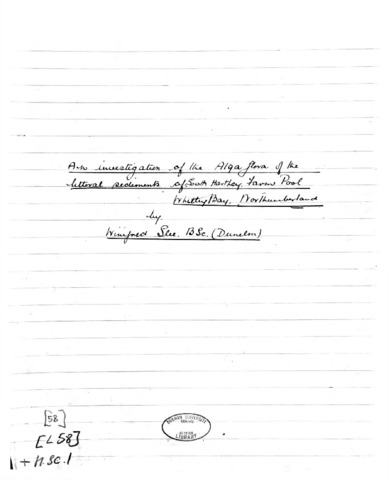An investigation of the alga flora of the littoral sediments of South Hartley Farm pool Whitley Bay Northumberland.