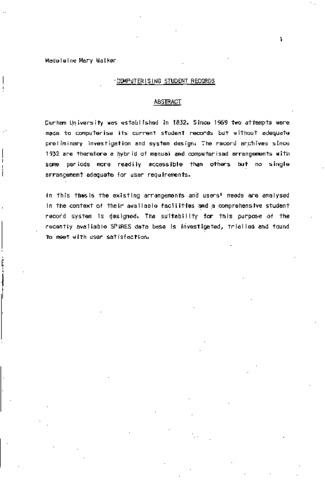 Durham University was established in 1832. Since 1969 two attempts were made to computerise its current student records but without adequate preliminary investigation and system design. The record archives since 1932 are therefore a hybrid of manual and computerised arrangements with some periods more readily accessible than others but no single arrangement adequate for user requirements. In this thesis the existing arrangements and users' needs are analysed in the context of their available facilities and a comprehensive student record system is designed. The suitability for this purpose of the recently available SPIRES data base is investigated, trial led and found to meet with user satisfaction.