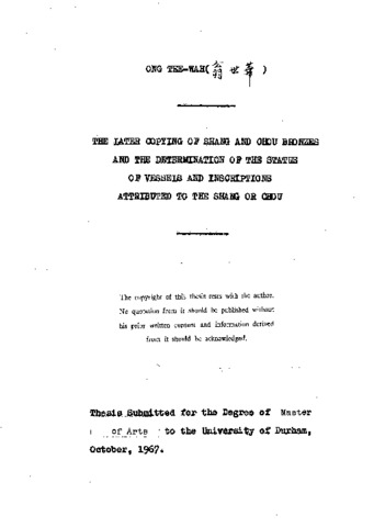 The later copying of Shang and Chou bronzes and the determination of the status of Vessels and inscriptions attributed to the Shang or Chou