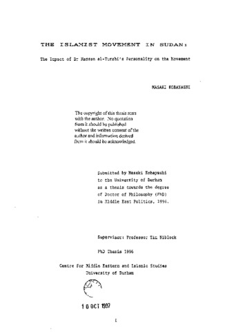 The Islamist movement in Sudan : the impact of Dr Hassal al-Turabi's personality on the movement.