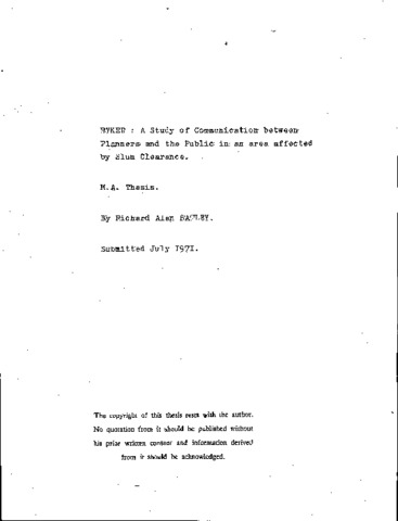 Byker: a study of communication between planners and the public in an area affected by slum clearance