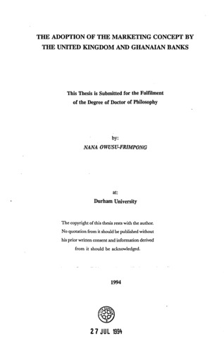 The adoption of the marketing concept by the United Kingdom and Ghanaian banks.