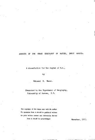 Aspects of the urban geography of Medina, Saudi Arabia.