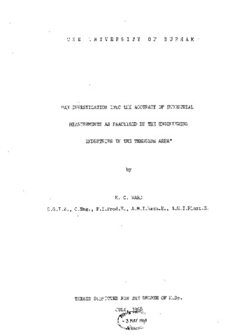 An investigation into the accuracy of industrial measurements as practised by the engineering industries in the Teesside area