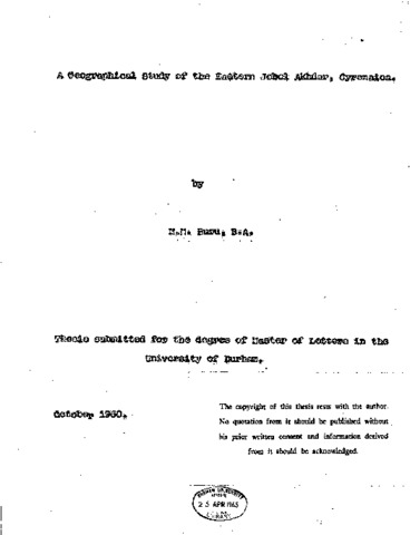 A geographical study of the Eastern Jebel Akhdar, Cyreniaca