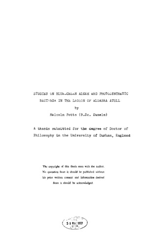 Studies on blue-green algae photosynthetic bacteria in the lagoon of Aldabra Atoll