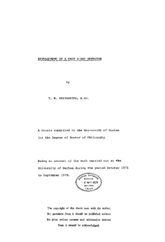 This thesis describes the development of a gas scintillation drift counter as a high counting rate X-ray detector. The new device is a modified version of the gas scintillation counter which is capable of working in a digital mode at a quite high rate without producing space charge effects. A gas scintillation drift counter has been built to investigate its behaviour using a gas mixture of argon and nitrogen. Scintillation and transport properties of the gas mixture have been studied using an Am(^241) α-particle source and a (Fe(^55)) 5.9 keV radioactive X-ray source in order to obtain optimum relative compositions of argon and nitrogen. The effects of various operating parameters on the energy resolution of the counter and the characteristics of output pulses have been extensively studied. When deciding on the counter parameters and operating conditions, a special emphasis has been placed on conditions which produce a minimum of space charge around the anode, and small pulse-widths. Pulse response, gain variations with counting rate and stability of the RCA 8575 photomultiplier used to detect scintillation light have been investigated using a light emitting diode pulser, a constant light source and primary scintillation pulses from 6.9 keV X-rays. An increase in the amplitude of output pulses and a change in the dynode potentials with pulsing rate have been observed when operating the photo tube with a resistive potential distribution network attached to its dynodes. These variations have been successfully eliminated by stabilising the dynode potentials using emitter follower configurations. J An energy resolution of 30% has been obtained using 5.9 keVX-rays with a gas amplification factor of about 20. Tests which have been done using cobalt K(_α)X-rays reveal that the resolving time of the counter system increases with the anode voltage and for a fixed discrimination level of 25 mV it varies from 43 ns at the anode voltage of 2600 V to 67 ns at 3000 V. An energy resolution of 40% has been obtained with cobalt K (_α) x-rays at a counting rate of 6 MHz and with a gas amplification factor of 15. The characteristics of the scintillation pulses are found to be degraded with increasing intensity of the X-ray beam because of coincident events. However, a counting rate of 9.5 MHz has been achieved with this counter at the expense of its energy resolution.