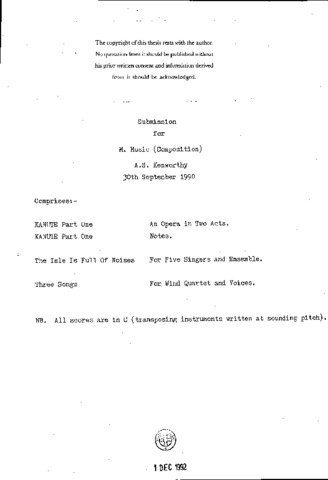 Kanute part one an opera in two acts. Kanute part one notes. The isle is full of noises for five singers and ensemble. Three songs for wind quartet and voices.