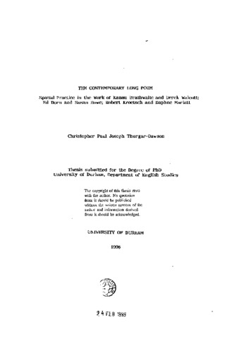 The contemporary long poem : spatial practice in the work of Kamau Brathwaite and Derek Walcott; Ed Dorn and Susan Howe; Robert Kroetsch and Daphne Marlatt.