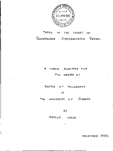 Topics in the theory of generalised hypergeometric series.