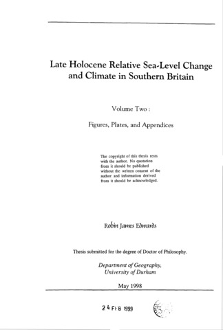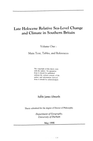 Late Holocene relative sea level change and climate in southern Britain.