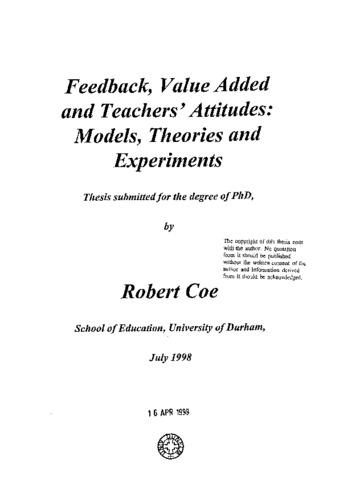 Feedback, value added and teachers attitudes : models, theories and experiments.
