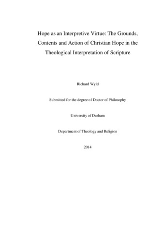 Hope as an Interpretive Virtue: The Grounds, Contents and Action of Christian Hope in the Theological Interpretation of Scripture