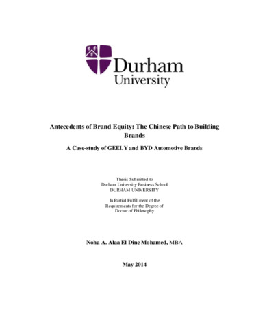 Antecedents of Brand Equity: The Chinese Path to Building Brands A Case-study of GEELY and BYD Automotive Brands