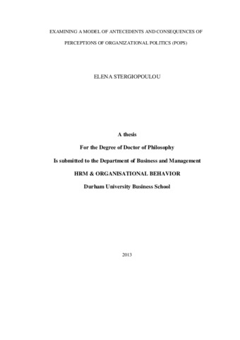 EXAMINING A MODEL OF ANTECEDENTS AND CONSEQUENCES OF PERCEPTIONS OF ORGANIZATIONAL POLITICS (POPS)