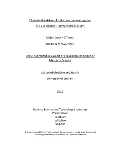 Spectrin Breakdown Products in the Investigation of Blast Induced Traumatic Brain Injury