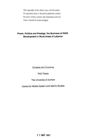 Power, politics and prestige : the business of INGO development in rural areas of Lebanon.