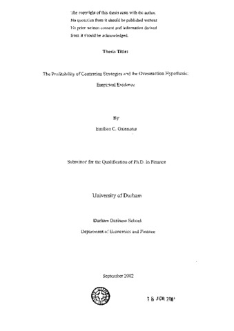 The profitability of contrarian strategies and the overreaction hypothesis : empirical evidence